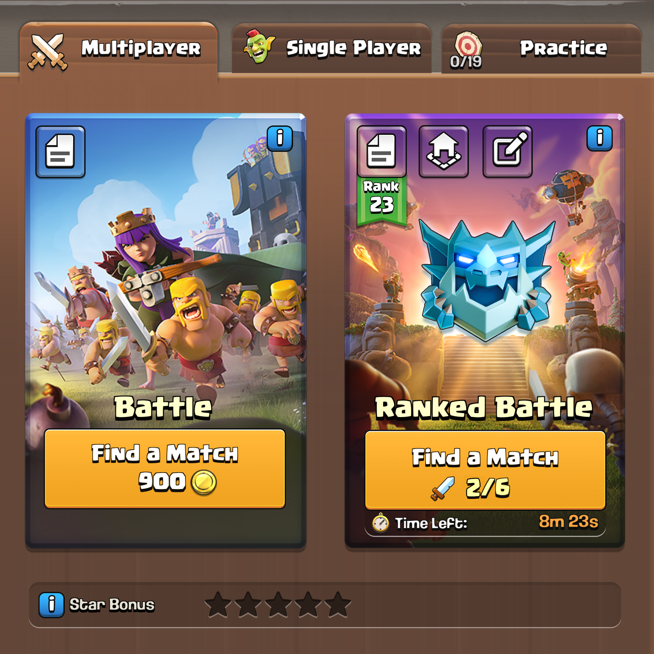 - Die Liga- und Sterneboni der Spieler basieren auf ihrem aktuellen Liga- und Rathaus-Level, und werden in allen Mehrspieler-Kämpfen angewandt, also in Kämpfen wie Ranglistenkämpfen, und beide Modi werden zum Sternebonus-Fortschritt beitragen.
